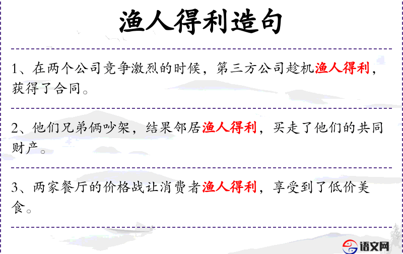 1. 【渔人得利】 - 趁着双方争执不下而从中得到好处。