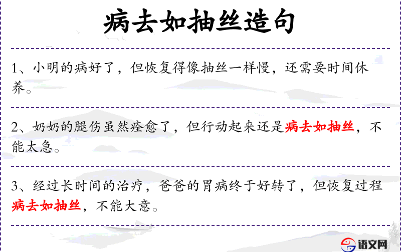 6. 【病去如抽丝】 形容病愈很快而且彻底。