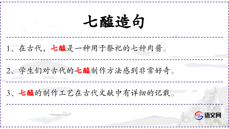 1. 【七醢】 - 古代的七种肉酱。