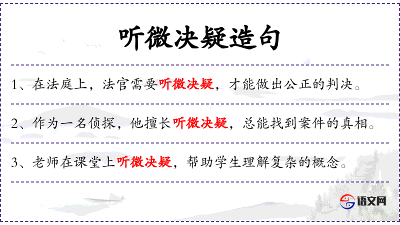 - 听微决疑:指通过细微的线索来解决疑问,是侦探工作的核心能力。
