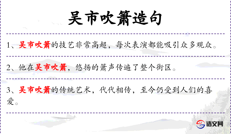 - “吴市吹箫,这一传统艺术形式,历经代代传承,至今依然广受欢迎。”