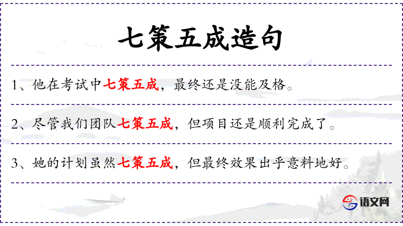 1. 【七策五成】 传说春秋末越大夫范蠡向其师计然学谋略七,用其五佐越即获成功,故云。