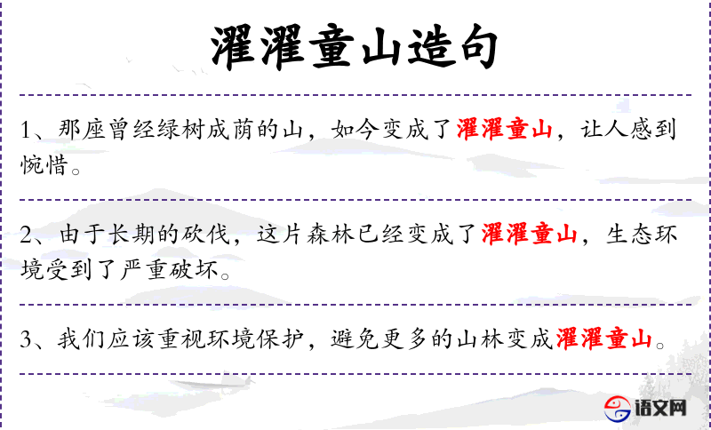 1. 【濯濯童山】 - 濯濯:光秃的样子;童:山无草木。没有树木,光秃秃的山