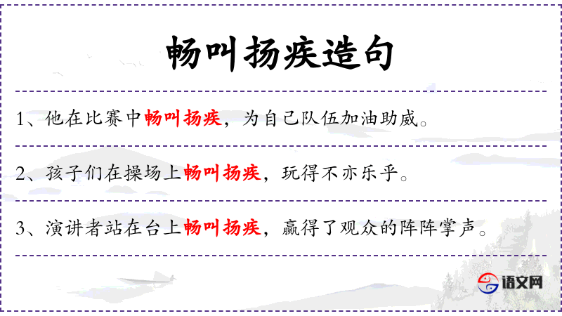 4. 【畅叫扬疾】 指大吵大闹。“暢叫”即“唱叫”,吵闹之意。“扬疾”犹嚷唧,亦吵闹之意。