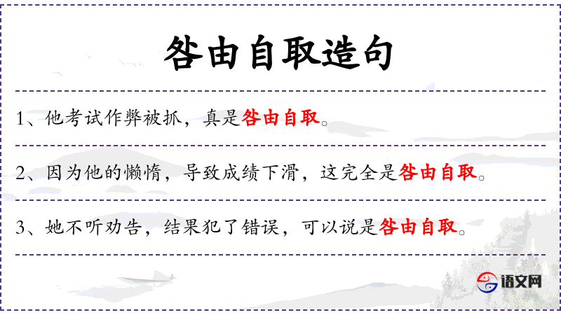 句子:“因为他的懒惰,导致成绩下滑,这完全是咎由自取。”