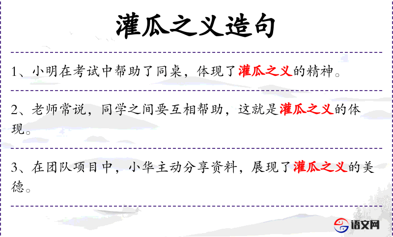 4. 【灌瓜之义】 灌:浇灌;惠:恩惠。比喻以德报怨,不因小事而引起纠纷。