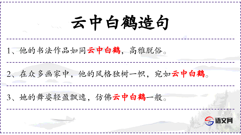 - 云中白鹤:比喻高洁、超凡脱俗的形象。