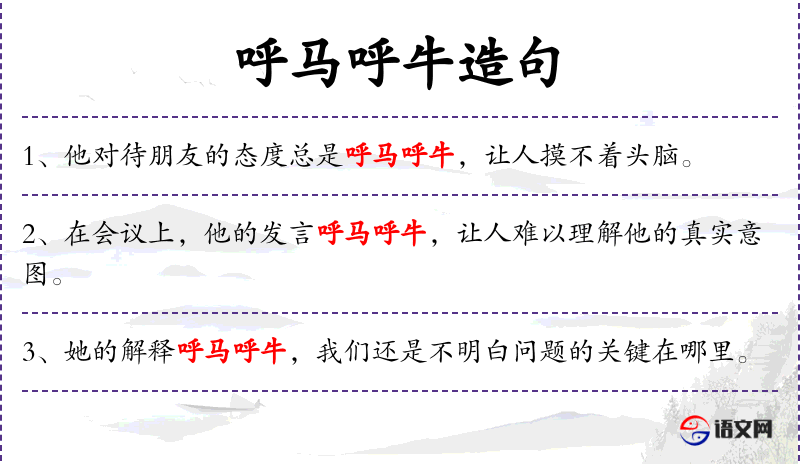- 文化背景:成语“呼马呼牛”是**传统文化中的表达方式,反映了汉语中丰富的比喻和象征用法。