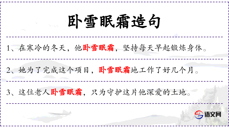 - 卧雪眠霜:这个成语体现了**文化中对坚韧不拔精神的赞美。