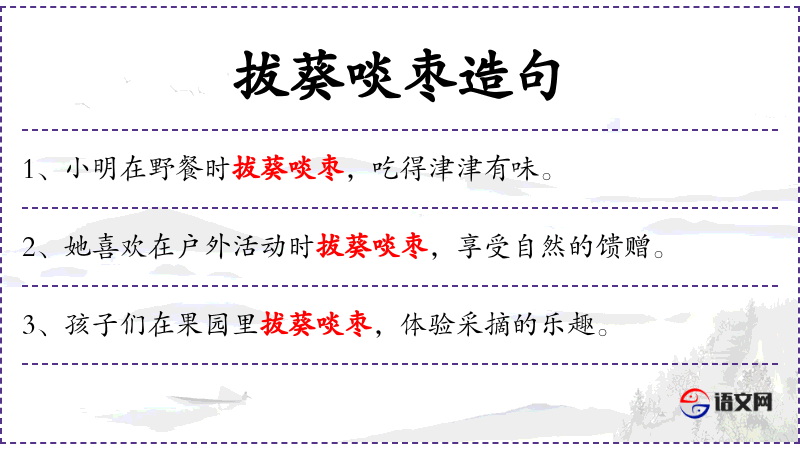 - 动词短语:拔葵啖枣