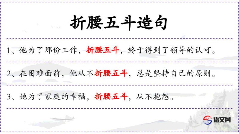 - 折腰五斗:a metaphor meaning to compromise or yield under pressure