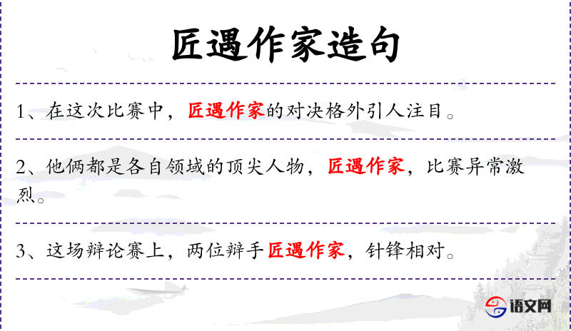 句子:“这场辩论赛上,两位辩手匠遇作家,针锋相对。”