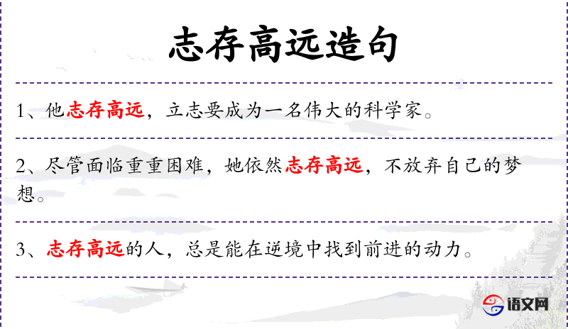 句子:“志存高远的人,总是能在逆境中找到前进的动力。”