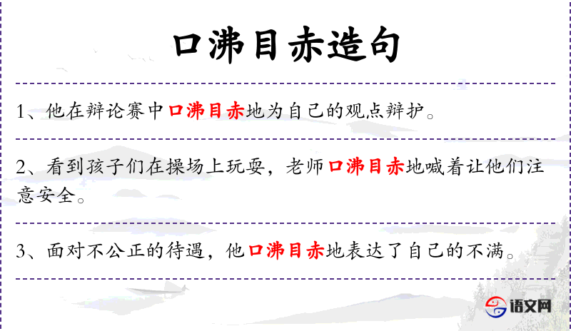 - 口沸目赤:形容情绪激动,面红耳赤的样子。