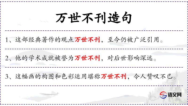 1. 【万世不刊】 汉·扬雄《郦商铭》:“金紫褒表,万世不刊。”