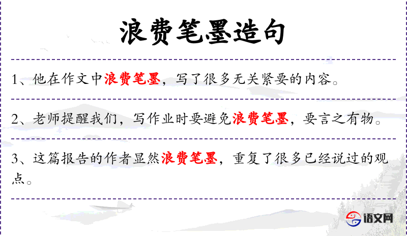 6. 【浪费笔墨】 - 指人作品不好或文章过于繁琐。