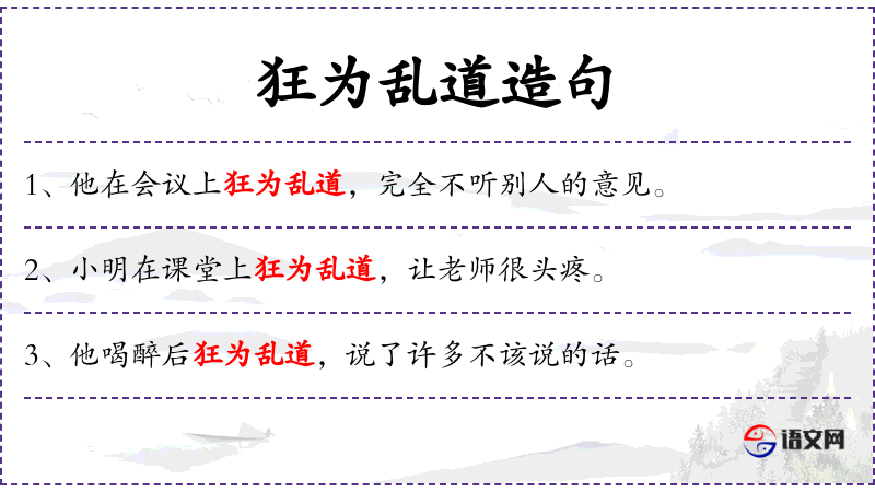 5. 【狂为乱道】 - 狂:狂妄;道:讲。狂妄地做事,胡乱地说话。