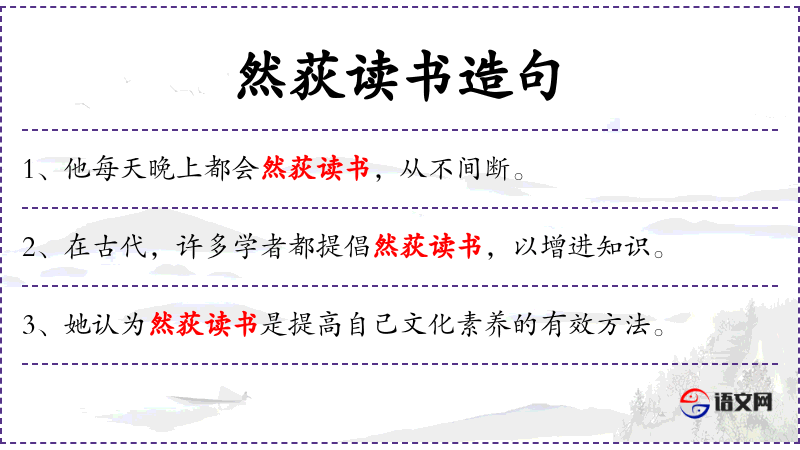 3. 【然荻读书】 - 然:“燃”的本字,燃烧;荻:芦苇一类的植物。燃荻为灯,发奋读书。形容勤学苦读。