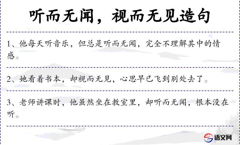 - 听而无闻:这个成语在**文化中用来形容听到了声音但没有真正理解或感受。