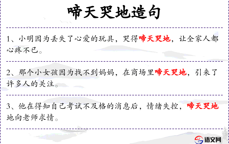 - 啼天哭地:形容极度悲伤,哭泣得非常厉害。