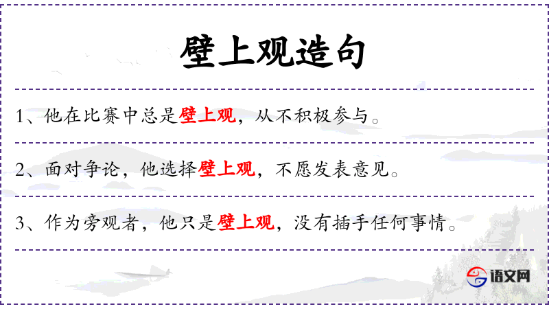 - 文化意义:“壁上观”这个成语反映了**文化中对于旁观者角色的认知。