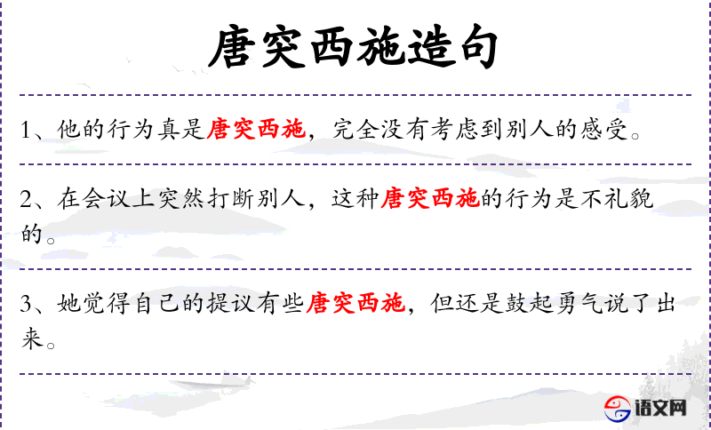 - 唐突:形容词,意为冒失或不礼貌。