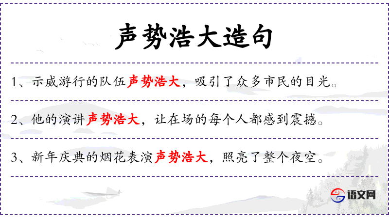 - 声势浩大:形容规模大,气势强。