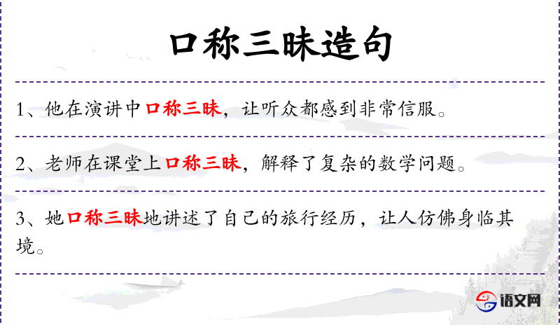 - 口称三昧:成语,原指**用语,意为深入禅定,此处可能比喻说话时非常专注或深入。