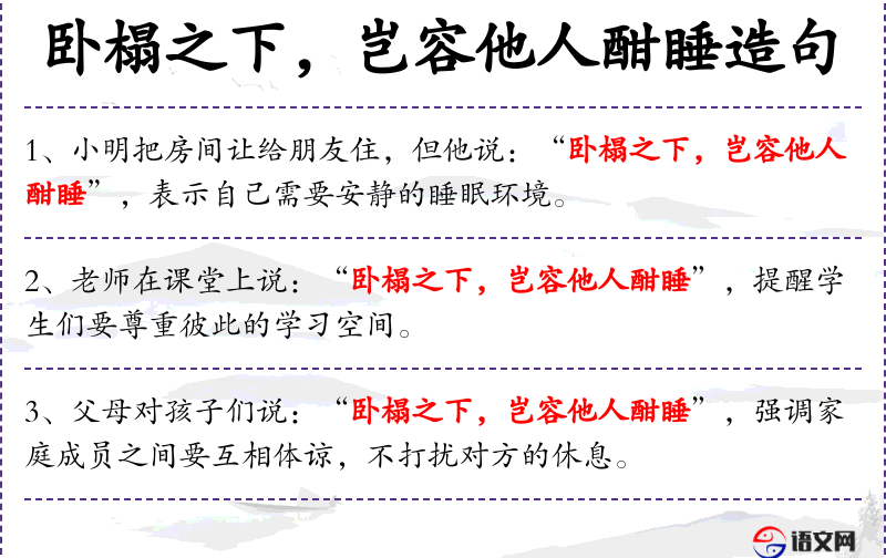 - 宾语:“卧榻之下,岂容他人酣睡”
