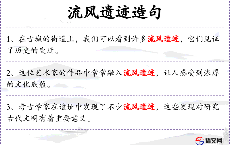 6. 【流风遗迹】 前代遗留下来的风尚和陈迹。