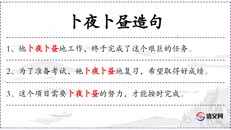 - 卜夜卜昼:这个成语体现了**文化中对勤奋和不懈努力的重视。