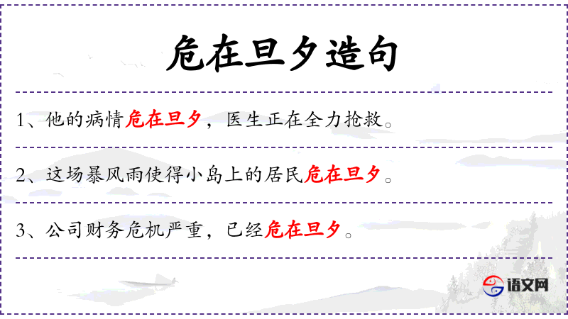 - 补语:危在旦夕