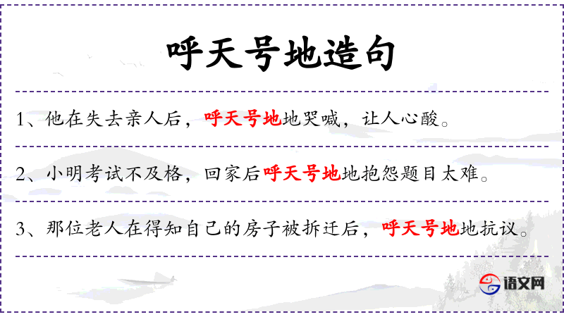 - 呼天号地:形容极度悲痛或愤怒,大声呼喊。