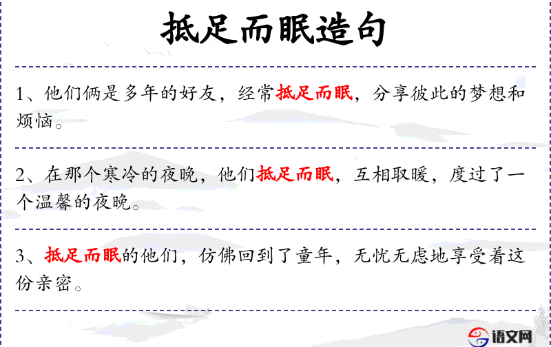 - 抵足而眠:形容两人关系亲密,睡在一起。