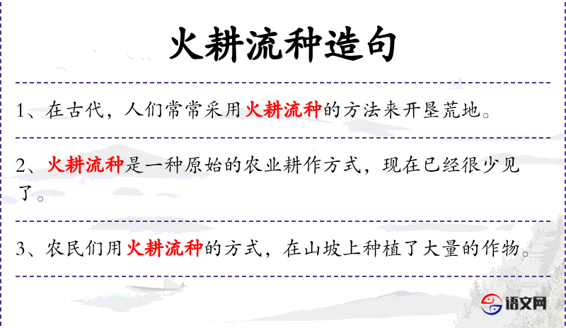 3. 【火耕流种】 古代一种原始的耕种方式。先用火烧去杂草,然后引水播种。犹言火耕水耨。