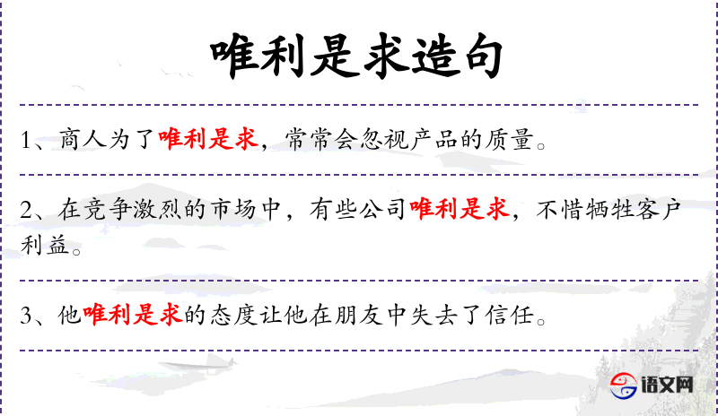 2. 【唯利是求】 以利为着眼点。指一心只顾谋取利益。同“唯利是视”。
