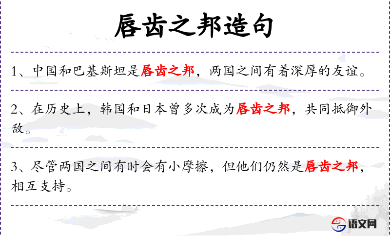 - 唇齿之邦:这个成语源自**古代,比喻关系密切、相互依存的国家或团体。