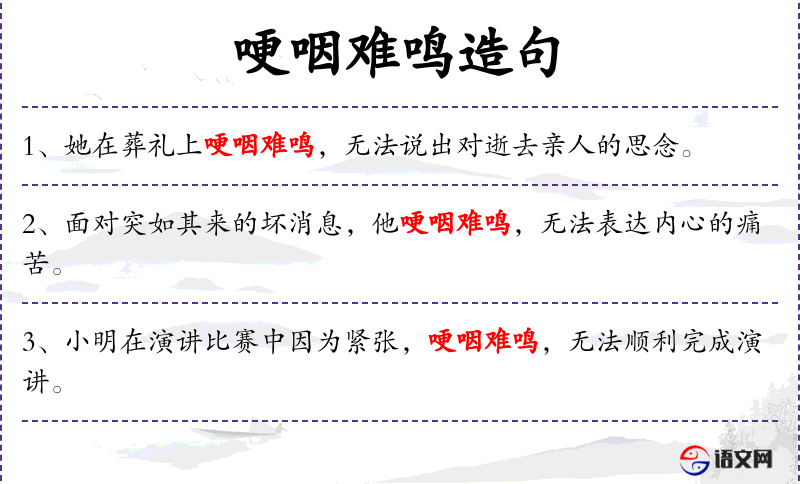 - 哽咽:动词,表示因悲伤或激动而声音阻塞。