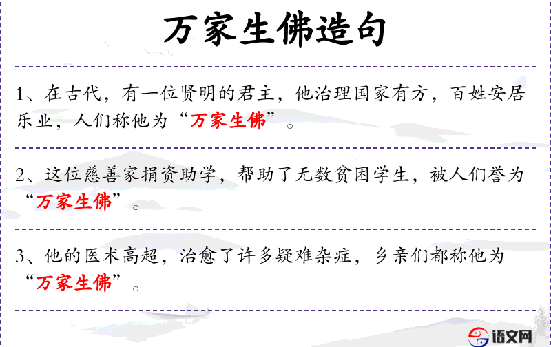 1. 【万家生佛】 - 旧时指受百姓爱戴的地方官。