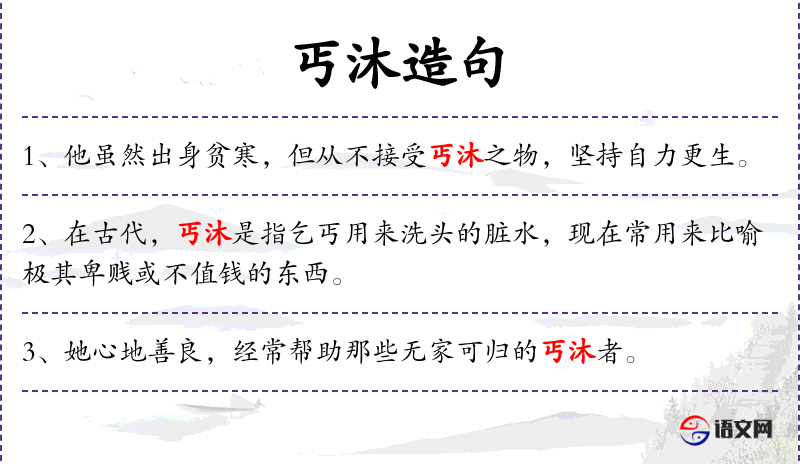 1. 【丐沐】 《史记.外戚世家》"姊去我西时,与我决于传舍中,丐沐沐我,请食饭我,乃去。"司马贞索隐"丐者,乞也;沐,米潘也。谓乞潘为弟沐。"一说,乞沐具为弟洗沐。见《汉书.外戚传上.孝文窦皇后》颜师古注◇用为抚爱幼弱的典实。