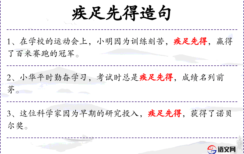 7. 【疾足先得】 比喻行动迅速的人首先达到目的。