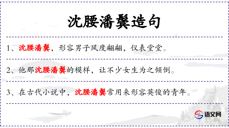 1. 【沈腰潘鬓】 - 形容姿态、容貌美好(特指男子)。