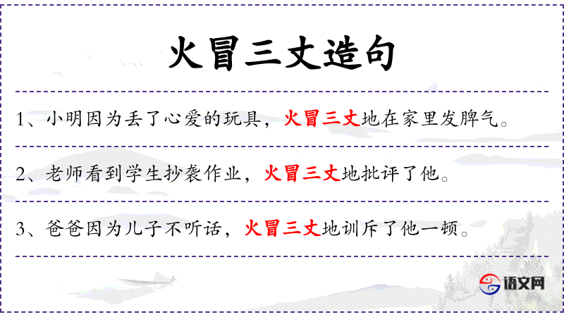 1. 【火冒三丈】 - 冒:往上升。形容愤怒到极点。
