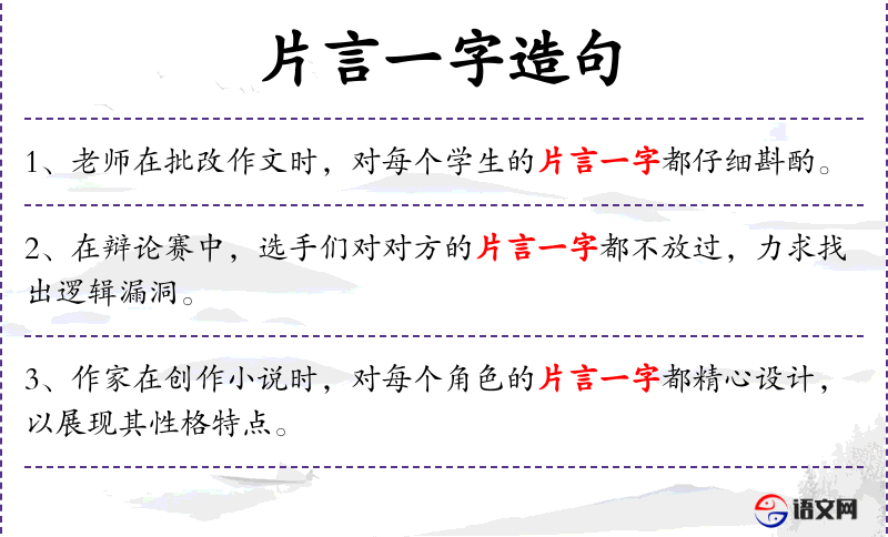 4. 【片言一字】 - 犹片言只字。少量的文字。