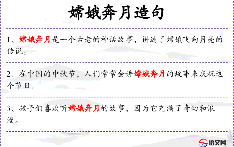- 奔月:字面意思是“向月亮奔跑”,这里指嫦娥飞向月亮的故事。