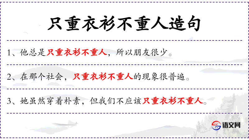 1. 【只重衣衫不重人】 指人势力,看人只重衣着。