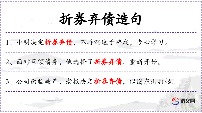 - 折券弃债:动词短语,表示放弃债务或债券。