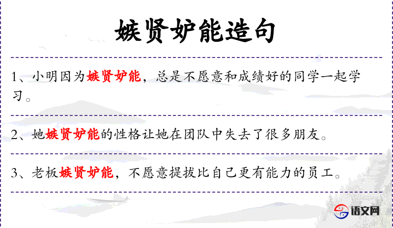 - 嫉贤妒能:这个成语反映了**传统文化中对嫉妒心理的批判。在社会交往中,鼓励人们欣赏他人的优点,而不是嫉妒。