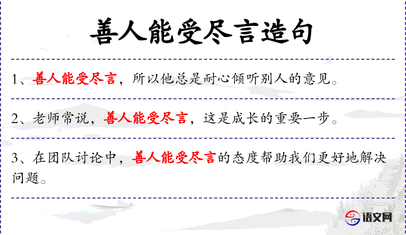 句子:“学*善人能受尽言的品质,可以帮助我们建立更健康的人际关系。”
