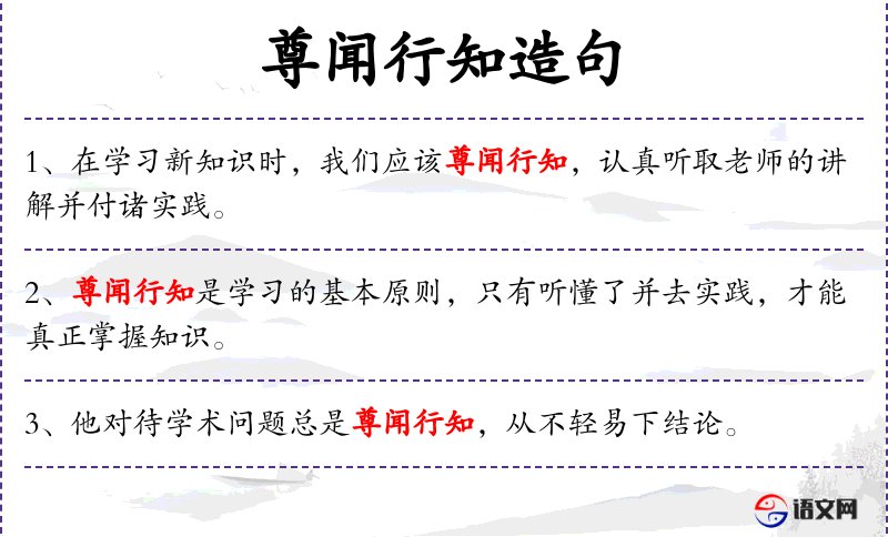 句子:“在学*新知识时,我们应该尊闻行知,认真听取老师的讲解并付诸实践。”